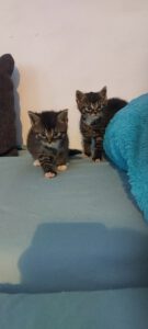Die beiden Kater sind die Geschwister unserer Neuzugänge von letzter Woche. Die Mutterkatze kümmert sich nun auch nicht mehr um die beiden, sodass auch sie schnell eine Pflegestelle brauchten.