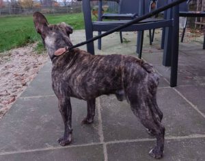Wir lernten Paule – einen 3-jährigen Franz. Bully kennen. Wo er ursprünglich herkommt, können wir nur vermuten: vom Vermehrer oder von der ach so tollen Hobbyzucht oder was auch immer. Auf jeden Fall stammt er aus einer Qualzucht, verkauft an überforderte Rentner, die ihn in einer Box hielten. Hängendes Ohr, viel zu dünn, schlechtes Fell und ein leerer Blick.